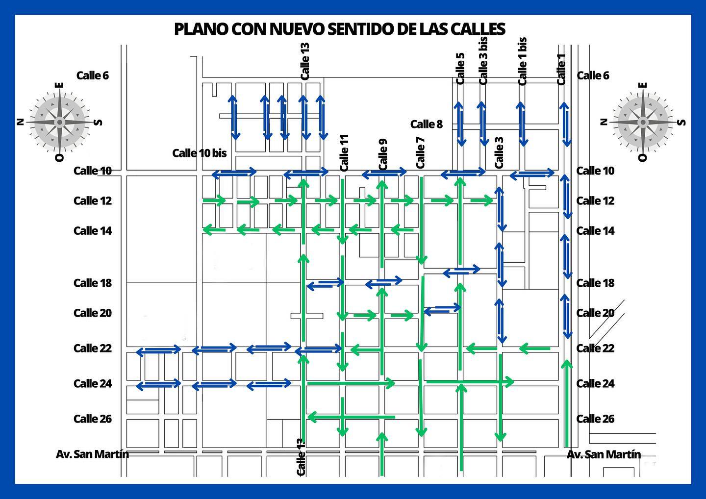 - El sentido de circulación de la calle 13 entre 22 y 10, será sentido oeste-este. Por lo tanto la calle 13 queda de una sola mano con sentido oeste-este, desde la calle 36 hasta la calle 10.