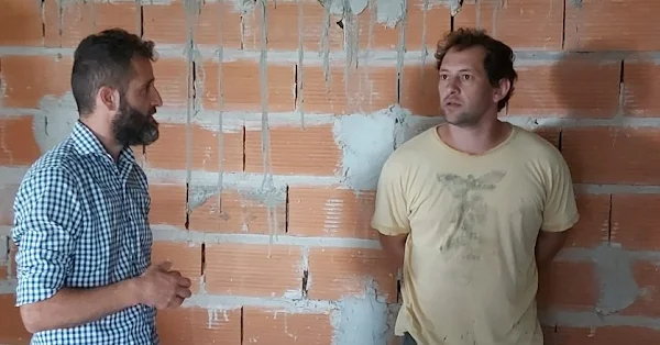 El intendente Municipal interino del distrito de Hipólito Yrigoyen, Pedro Hernández, junto al secretario de Gobierno, Martín Arpigiani y la concejal Claudia Zara visitaron el avance de obra de la residencia de la Escuela Agropecuaria.